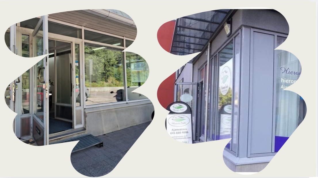 Liisan grilliä vastapäätä, tientoisella puolella Hierontastudion tiloissa.